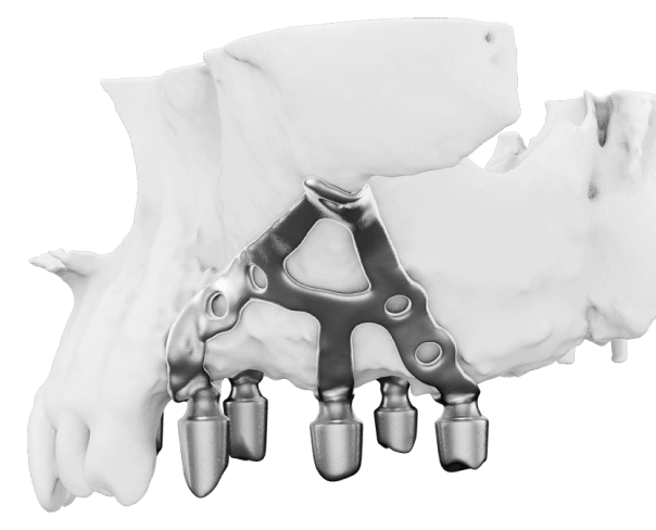 Конструкции уникальны не только по своей структуре, но и по типу изготовления. При их создании задействуется печатная технология. Удается максимально точно смоделировать систему, чтобы она идеально прилегала к кости. Каждый имплант имеет индивидуальный серийный номер, на него распространяется гарантия производителя.Внешне данные импланты напоминают тонкий каркас в форме седла, выполненный из прочного титана или кобальт-хрома. Губчатая поверхность имеет множество микропор, в которые быстро прорастает костная ткань. У них есть опорная часть, которую надевают на альвеолярный отросток, стабилизирующие балки, головки и шейки для крепления протеза.